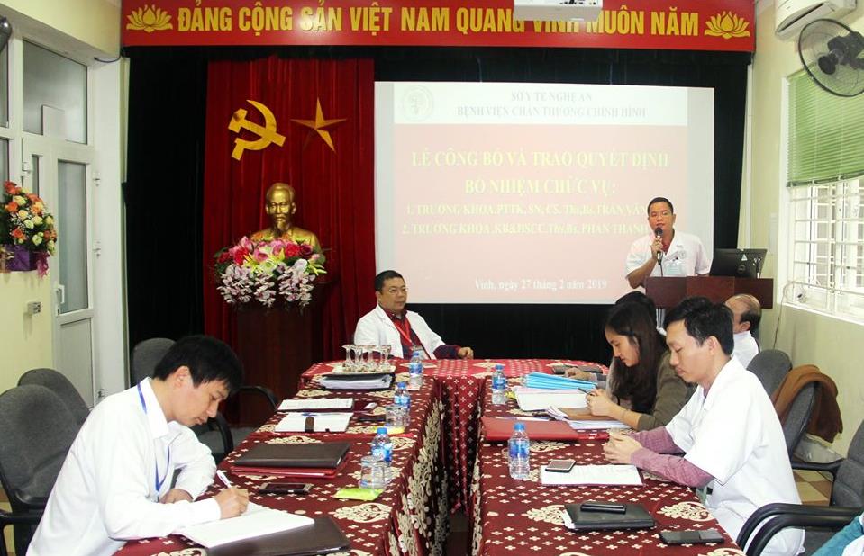 Sáng ngày 05/2/2019 (mồng một tết Kỷ Hợi), Đại diện Ban lãnh đạo, Công đoàn bệnh viện, đồng chí Thạc sỹ,Bác sỹ Lê Văn Hữu - Phó giám đốc- Chủ tịch Công đoàn bệnh viện cùng các Y, Bác sỹ Bệnh viện Chấn thương chỉnh hình Nghệ An đã đến động viên, thăm hỏi, tặng quà và chúc tết tất cả những bệnh nhân đang nằm điều trị tại bệnh viện trong dịp tết.